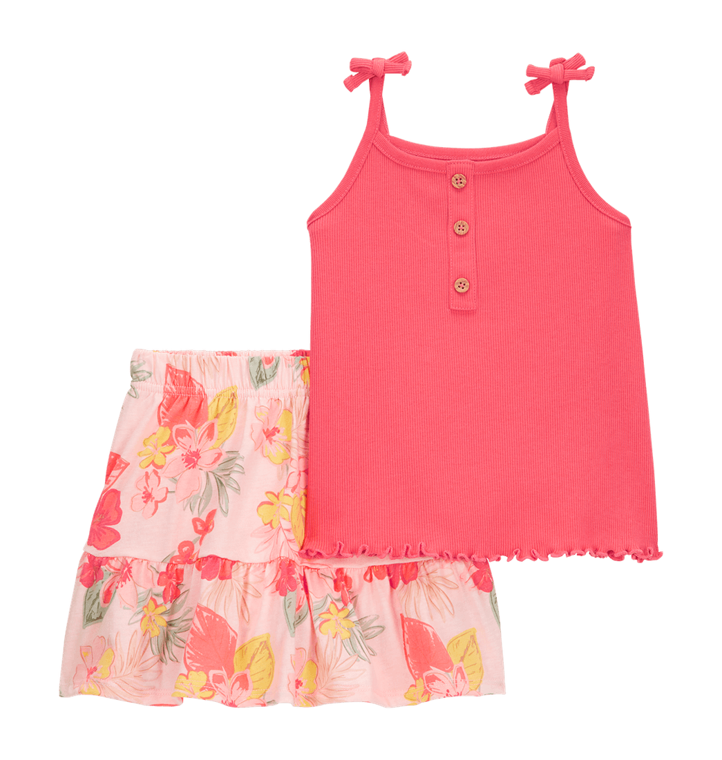 Set Blusa Rosada y Falda Flores Niñas - Carter's