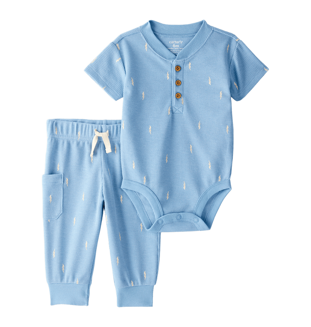 Set Body Manga Corta y Pantalón Azul Bebés Niños - Carter's