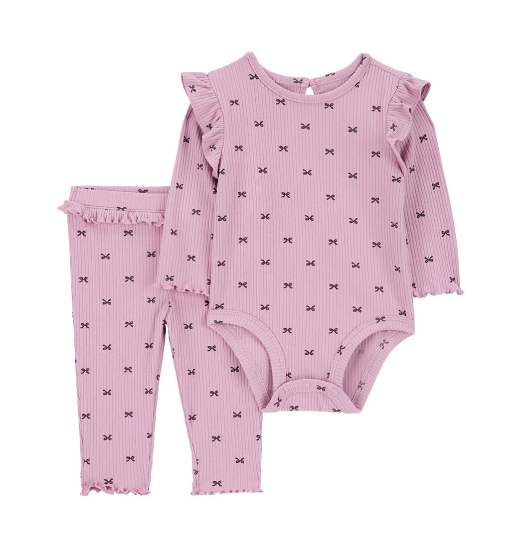Set Body Manga Larga y Pantalón Rosado Bebés Niñas - Carter's