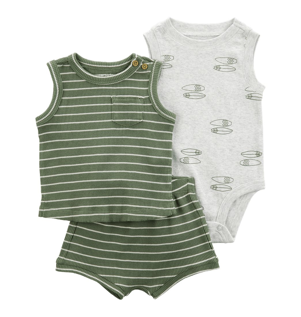 Set Camiseta Verde, Body Gris y Short Verde Bebés Niños - Carter's