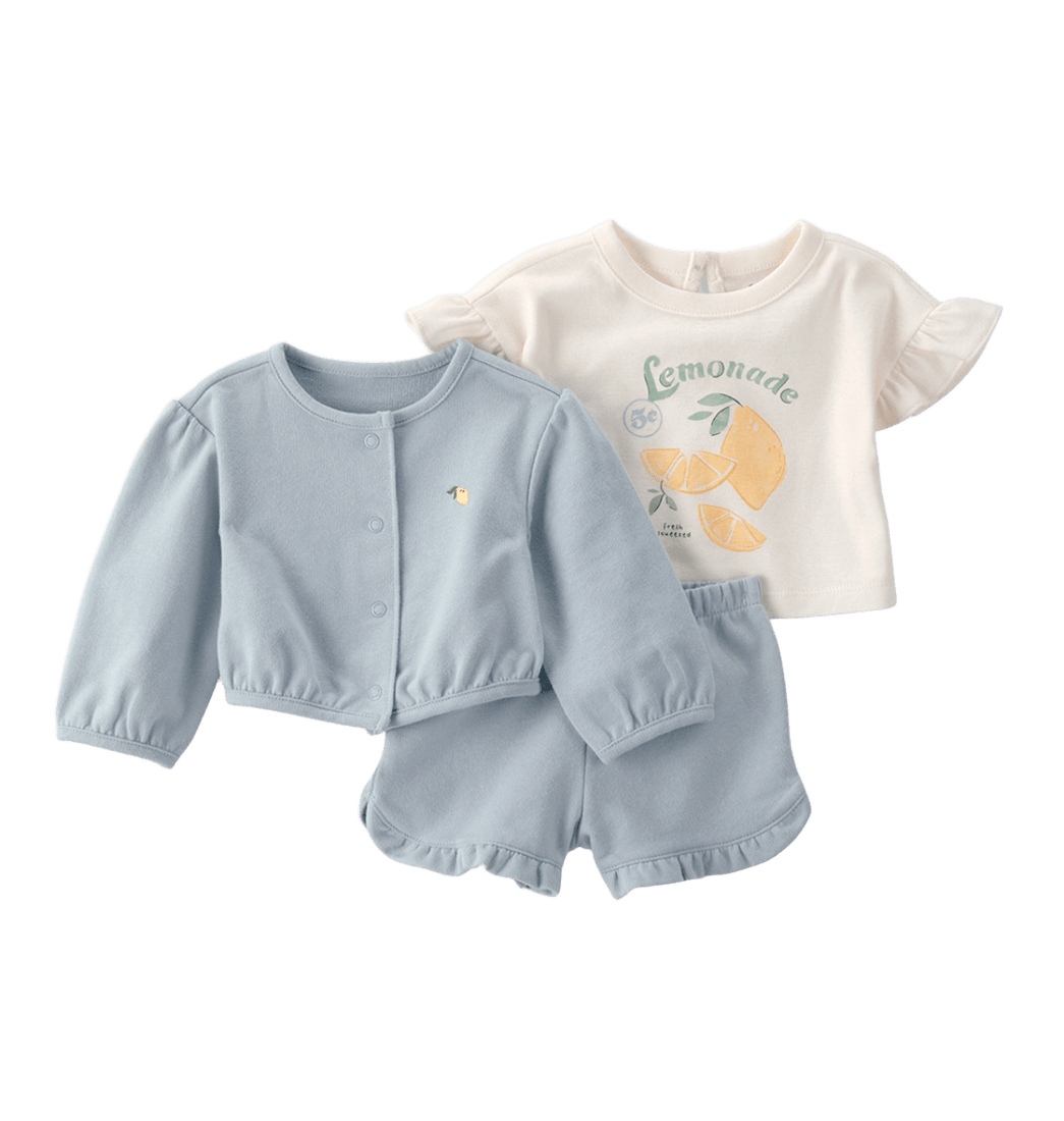 Set Chaqueta, Camiseta Estampada y Short Bebés Niñas - Carter's